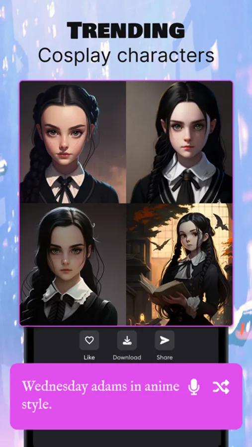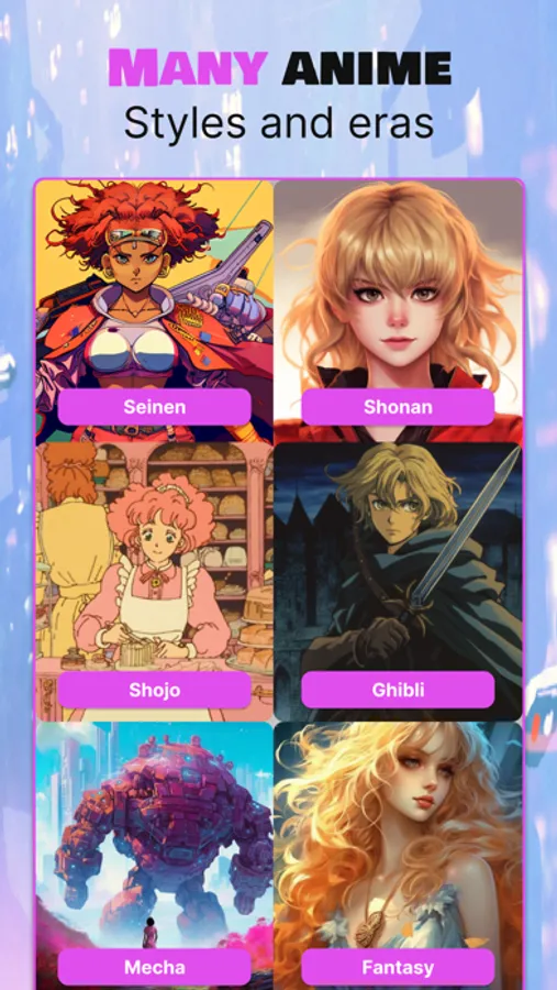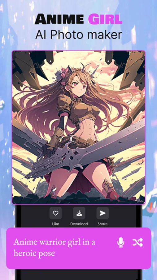 AI Anime Photo Generator is your ticket to the mesmerizing world of AI-generated anime art. Whether you are looking to create stunning artwork, generate a personalized anime avatar, or design your own anime characters, our app provides you with the tools to make it happen.