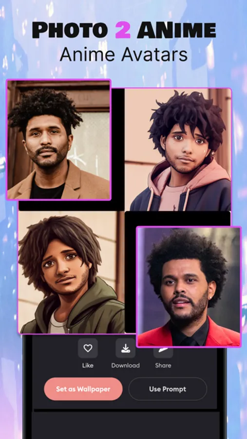 Our app doesn’t stop at generating artwork. AI Anime Photo Generator is equipped with an advanced Anime Photo Editor, capable of transforming your selfies or any photo into high-quality anime avatars. Create your anime alter ego or just have fun morphing your friends into anime characters!