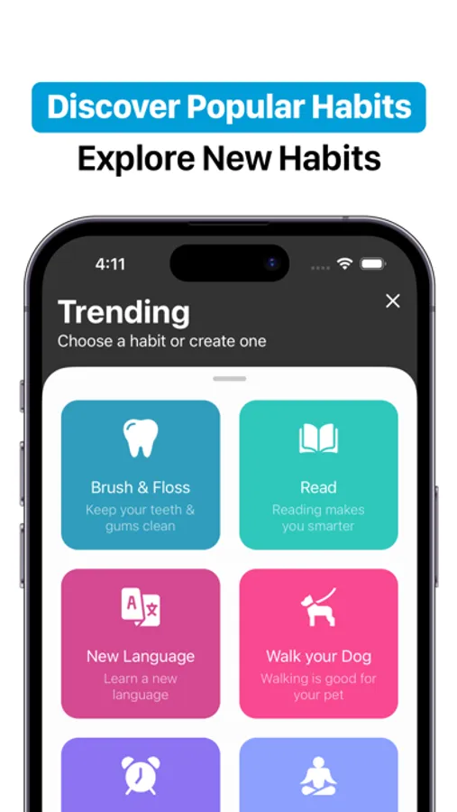 Explore a wide range of trending habits. Get inspired by popular habits and add them to your routine to boost your personal growth.