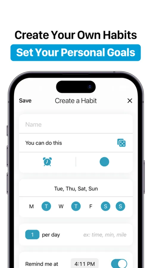 Tailor your habits to fit your lifestyle with the ability to create custom habits. Choose from a variety of inspirational quotes and set the frequency you want to practice your routine each week. Stay inspired and accountable on your journey to personal improvement.