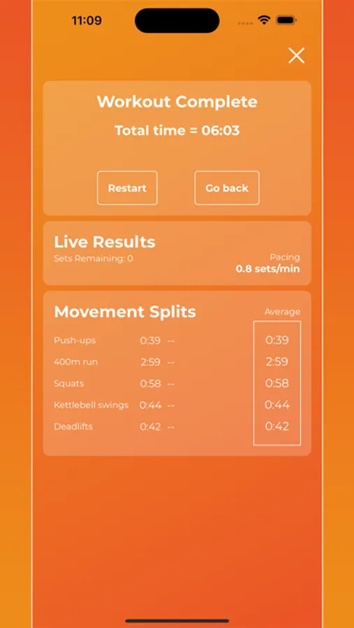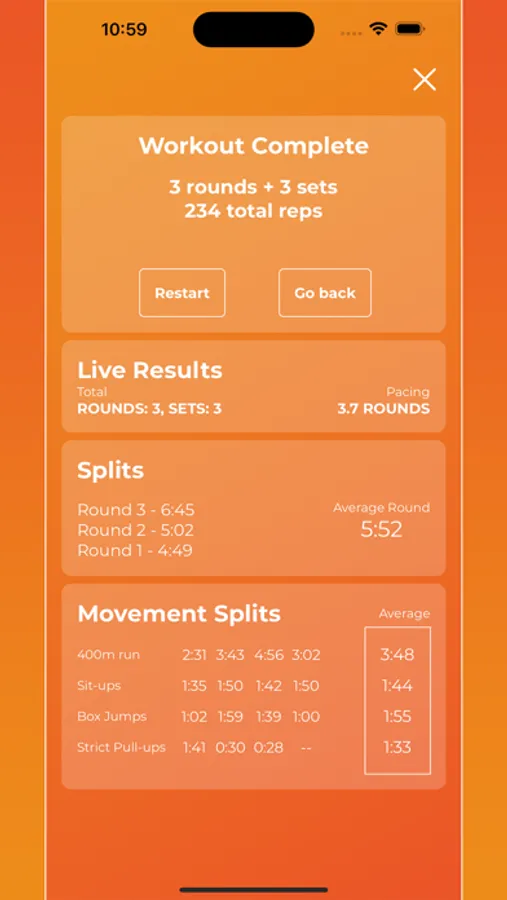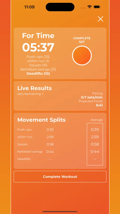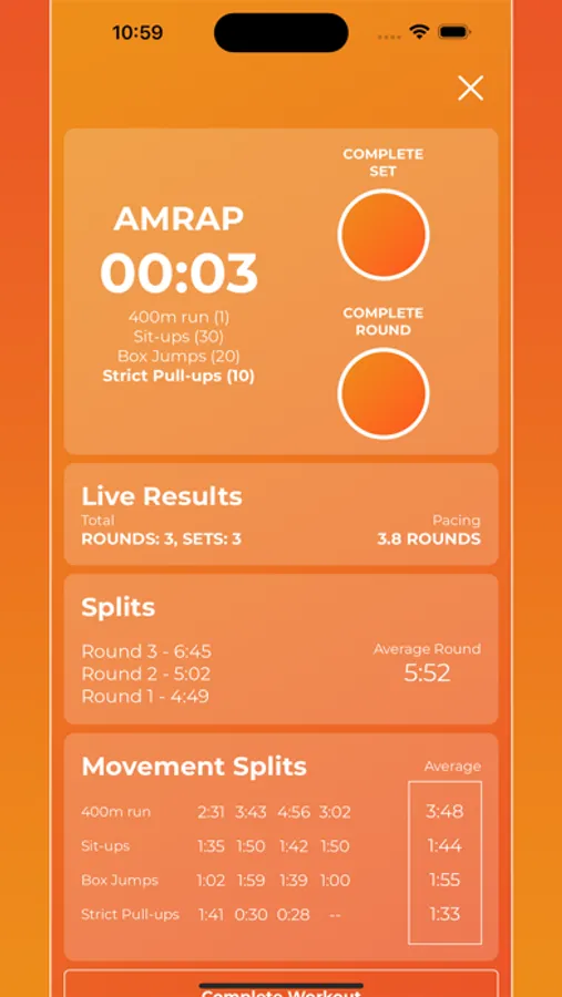 Advanced splits and tracking for your sets and rounds including end of workout pacing
