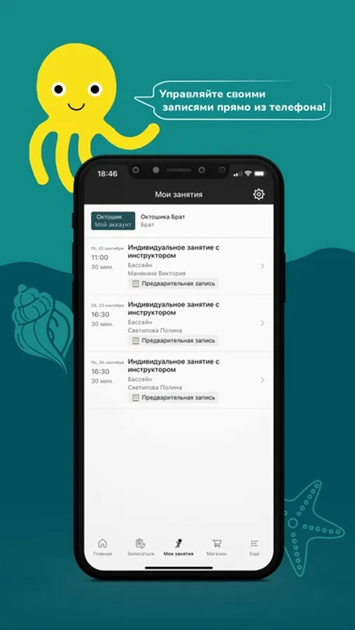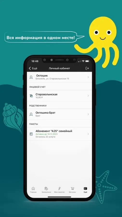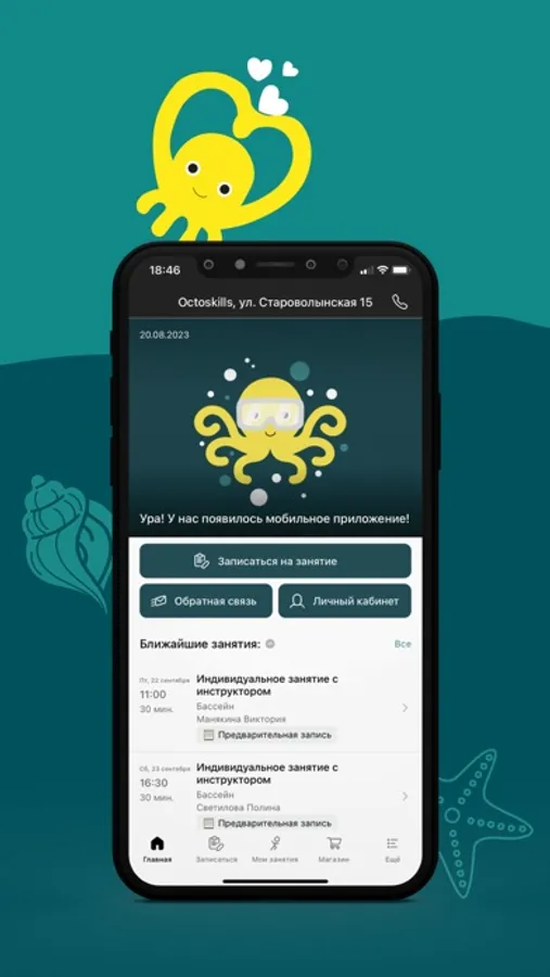 OctoSkills is a network of gentle swimming studios of a new standard. The application allows you to: follow the news, promptly receive information about changes and special offers, track the validity period of the subscription and the remainder of classes, sign up for classes on-line in free windows, as well as cancel classes, independently choose and pay for services, send applications for freezing the subscription.