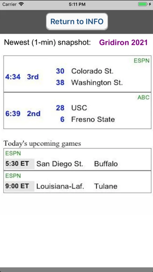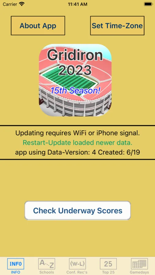 Unlike most other sports apps, "Gridiron 2023” is cleverly designed to not depend upon a persistent network connection. All features of this app function without a network connection. Occasional network access provides the most current data (game-times, outcomes, top25, conf-records) which is updated throughout gamedays with final scores. "Gridiron 2023” is a very handy app for all college football fans.