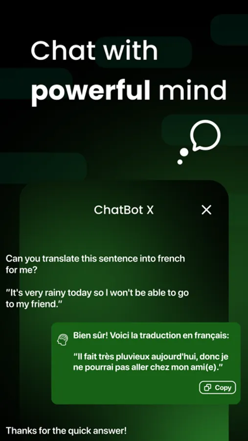 With its user-friendly interface and intuitive design, our ChatBot X app makes communication effortless and enjoyable. Experience the convenience of instant responses and intelligent insights as our chatbot comprehends and interprets your queries with astonishing accuracy.