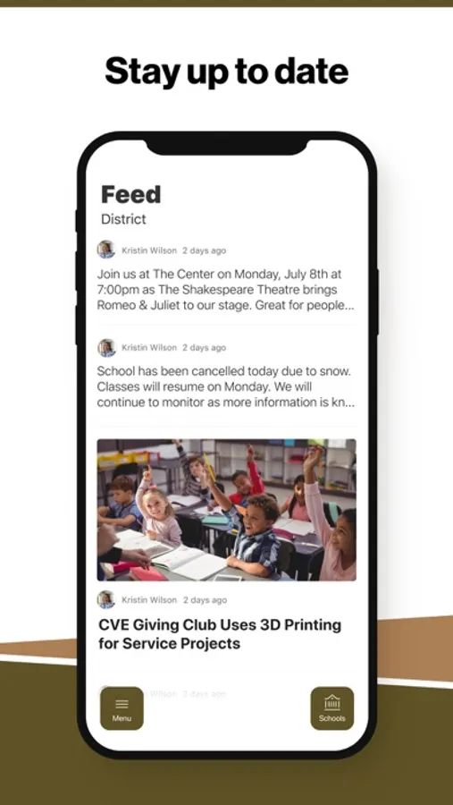 In the Live Feed is where you'll find updates from the administration about what's going on in the district right now. Whether that's celebrating a student's success, or reminding you about an upcoming deadline.
