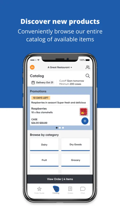 - Keep everything together: delivery days, cutoff times, order updates, and promotions all in one - place