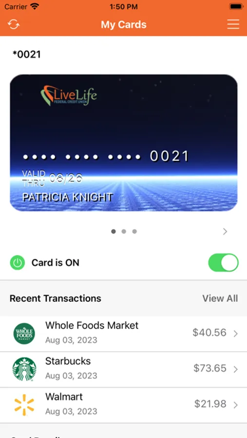 Live Life Cards protects your debit cards by sending transaction alerts and enabling you to define when, where and how your cards are used. Download to your smartphone, then set your preferences to monitor and manage your cards.