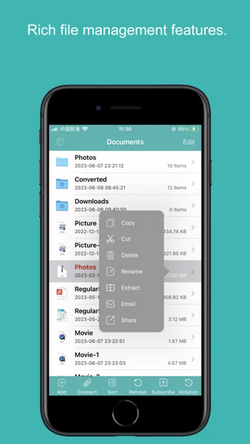 ● Five ways to transfer files(iTunes file sharing, WiFi sharing, Document Picker, Share to other app, Download from web browser).