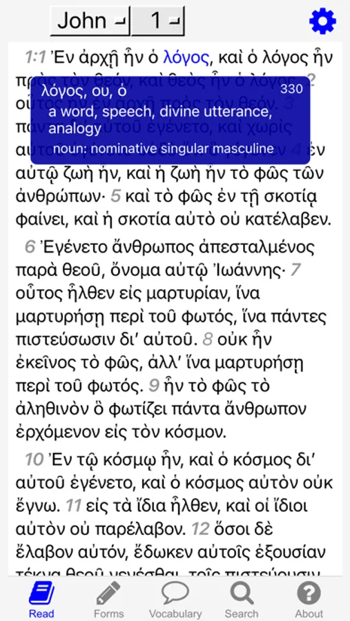 * Touch any word in the text to see its gloss and grammatical parsing.