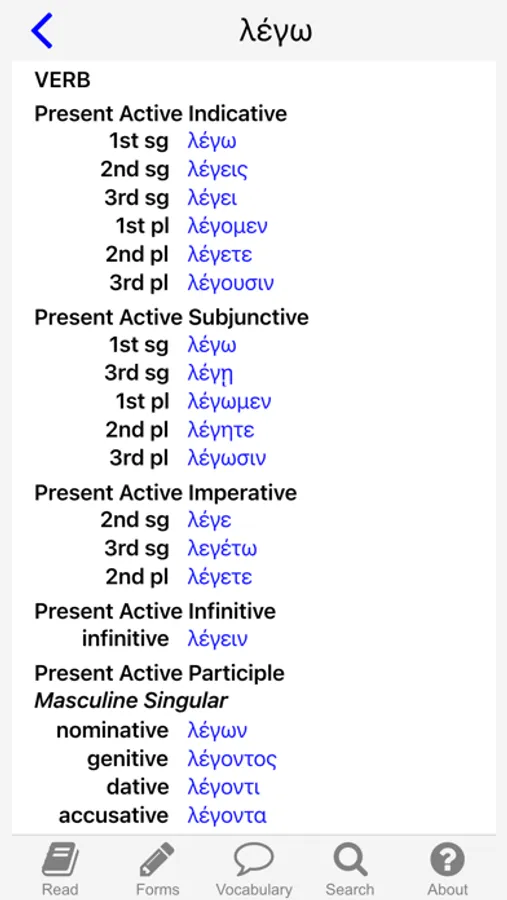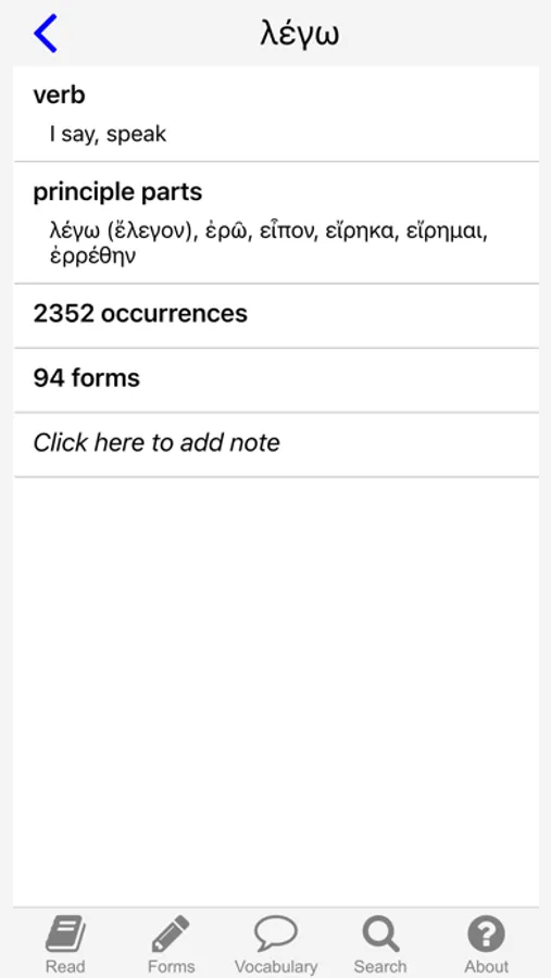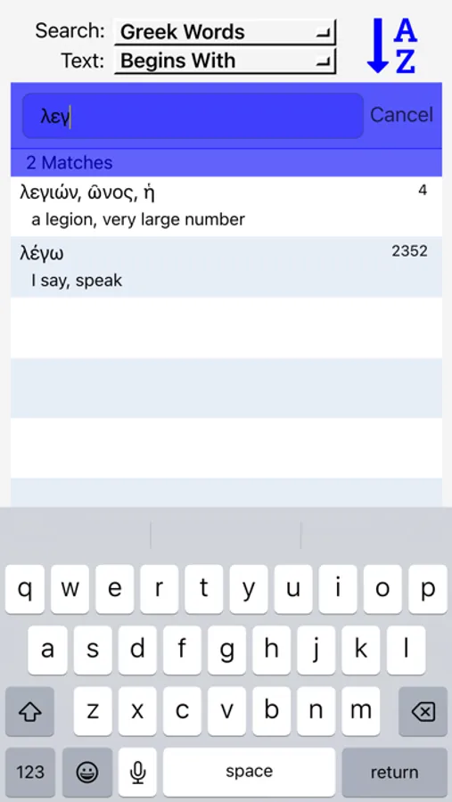 * Search for Greek words in the text based on dictionary entries, grammatical forms, or definitions.