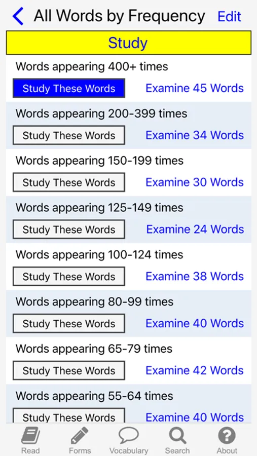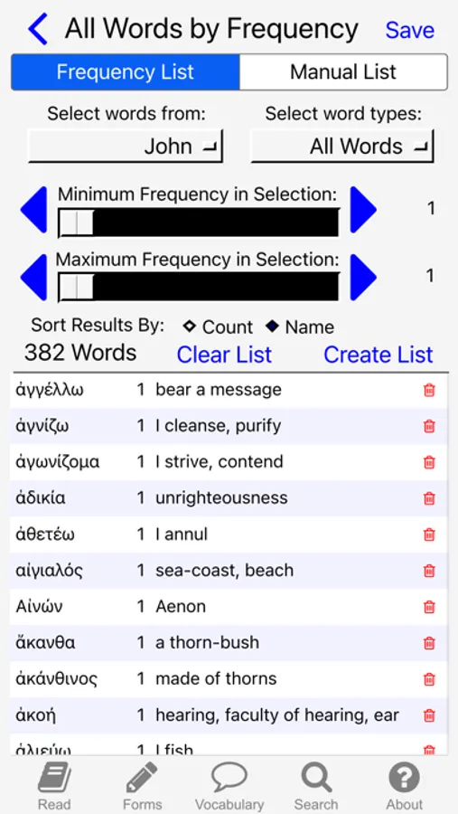 * Create Vocabulary lists for learning words in the Greek New Testament.