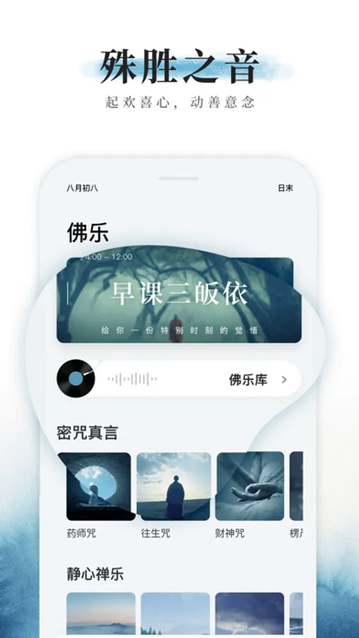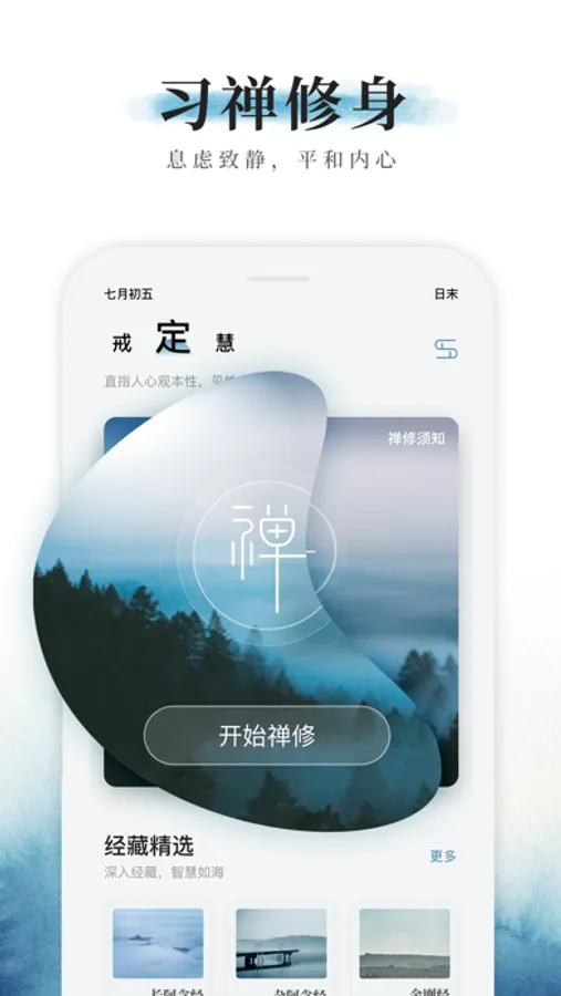 禅修体验:打开禅修模块,找到内心的平静与宁静。选择自然风景背景和冥想音乐,通过计时器和指导,踏上属于您的禅修旅程。