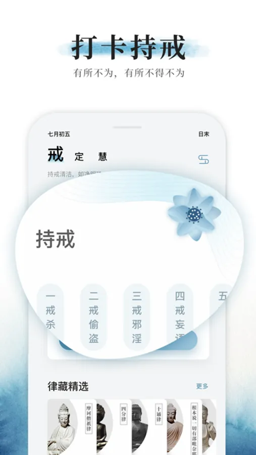持戒打卡:在持戒打卡功能中记录您的奉行。轻松追踪您的持戒日数,并观察自己的成长与进步。