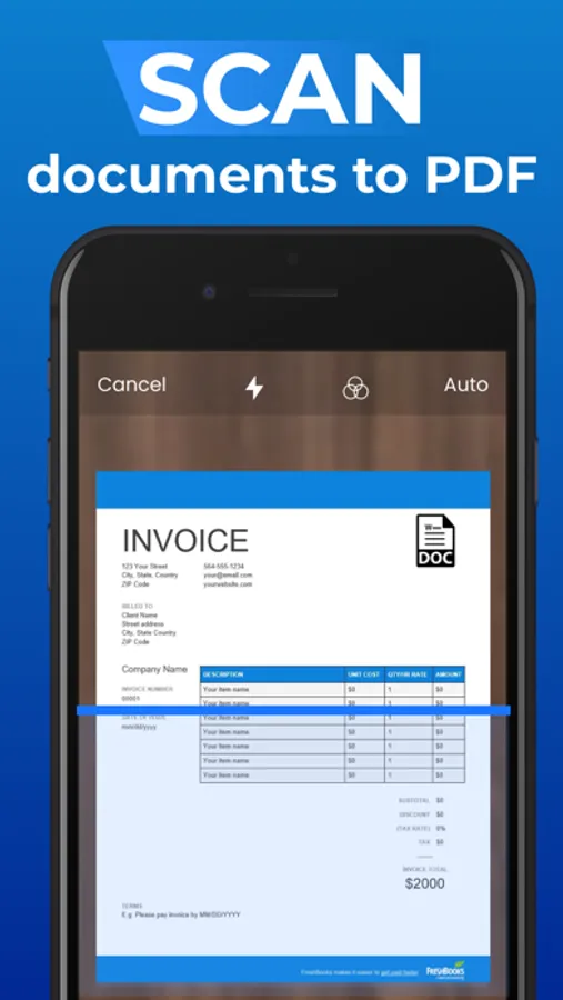 The app has a built-in scanner for scanning documents using your iPhone or iPad camera.