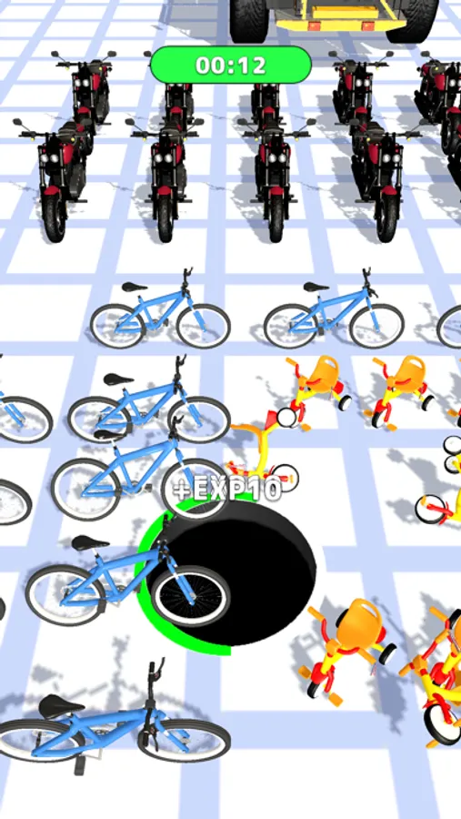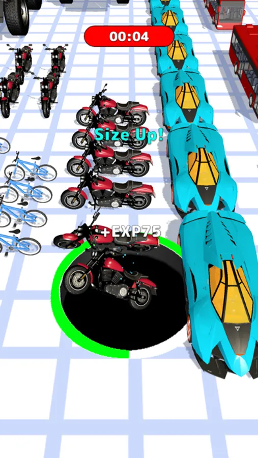 Move the black hole and collect the vehicles you sucked in!