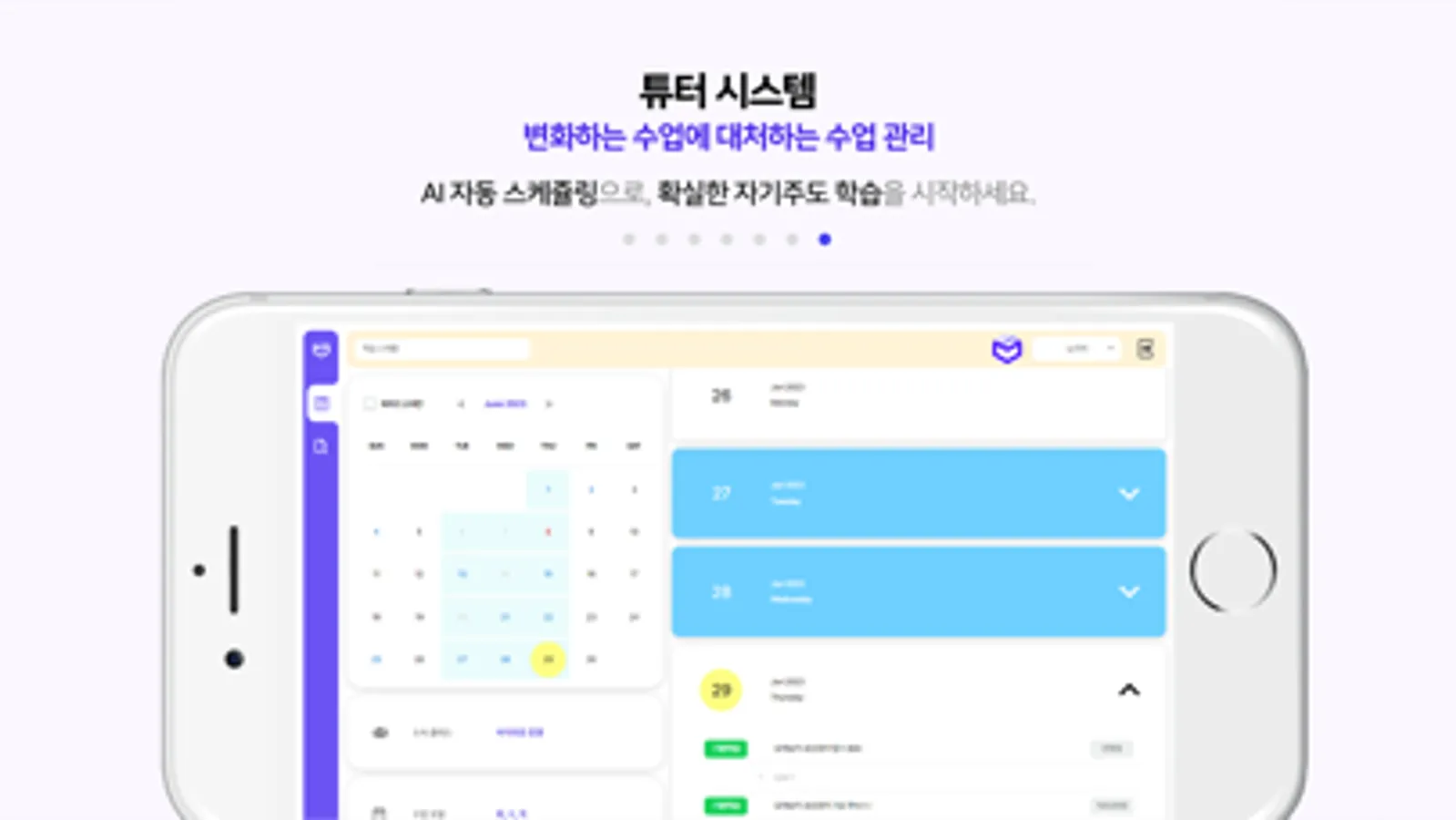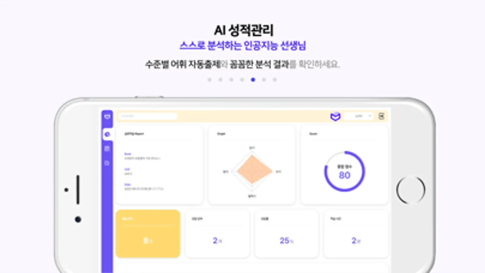 최초 레벨 테스트 실시 이후 학생의 수준별 맞춤 커리큘럼을 제공합니다. 기존 온라인 학습에서 불가했던 서술형 문제 채점방식이 탑재되어 있습니다.