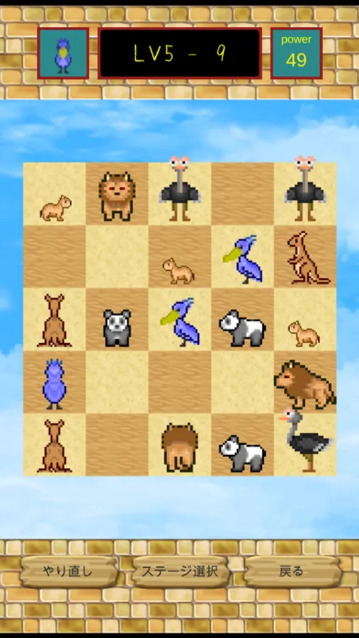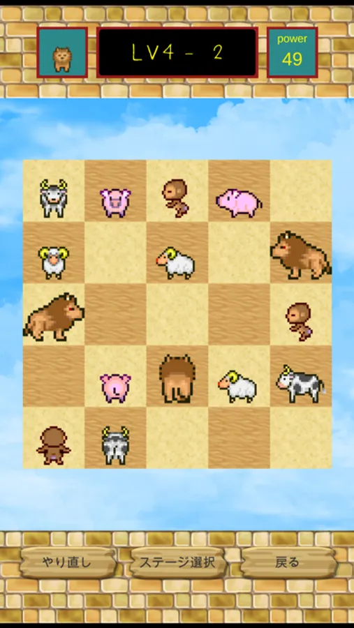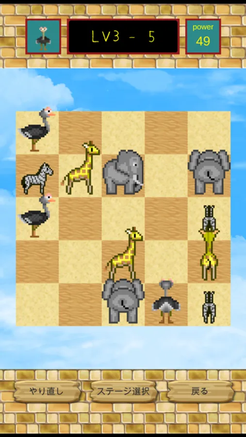 タップすると向いている方向に一歩前進する動物を、縦か横に3匹 並べて消していくだけ。全200面。