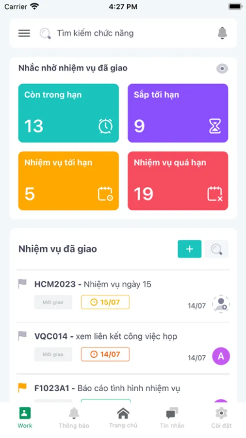 + Theo dõi tổng quan nhiệm đã giao