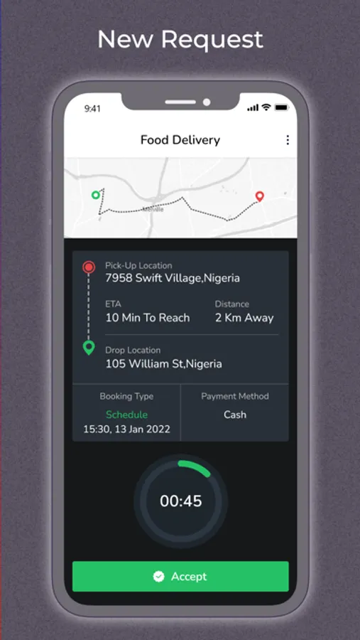 - Effortlessly manage incoming delivery/ride requests, deciding to accept or reject as you see fit.