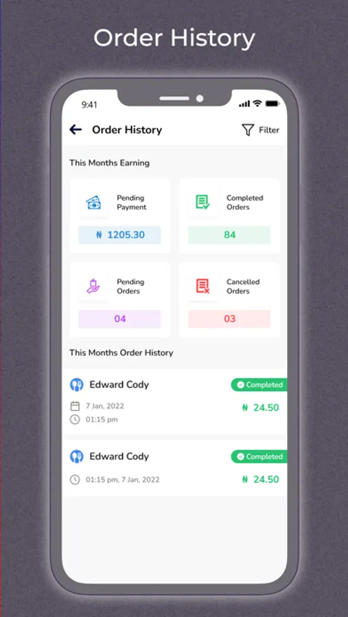 - Access a comprehensive ride/delivery history, complete with user details for easy reference.