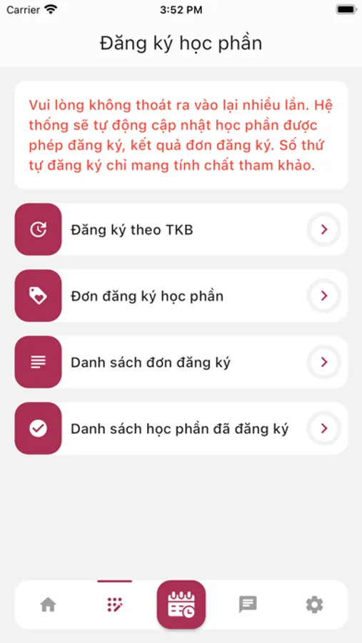 - Nhận các thông báo từ Nhà trường liên quan đến các hoạt động: Học tập – Giảng dạy, kiểm tra đánh giá, tài chính kế toán, thực tập – việc làm, thanh tra giám sát,…
