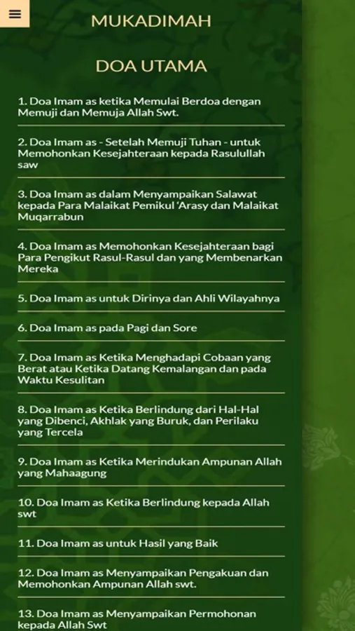 Aplikasi yang memudahkan Anda untuk membaca doa dan munajat yang tertera dalam kitab Sahifah Sajjadiyah lengkap dengan terjemahan bahasa Indonesia. Jangan lupakan kami dalam doa-doa Anda!