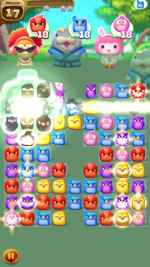 Different levels in the game have different tasks. You need to match various birds to eliminate them to complete the task. For example, you need to collect different types of birds, or find hidden fish to feed hungry kittens and defeat the invasion Create monsters, hatch birds, help small animals collect fruits, etc. More features require you to explore in the game, use your brain, use your hands, and experience the fun of this bird match-3 game!