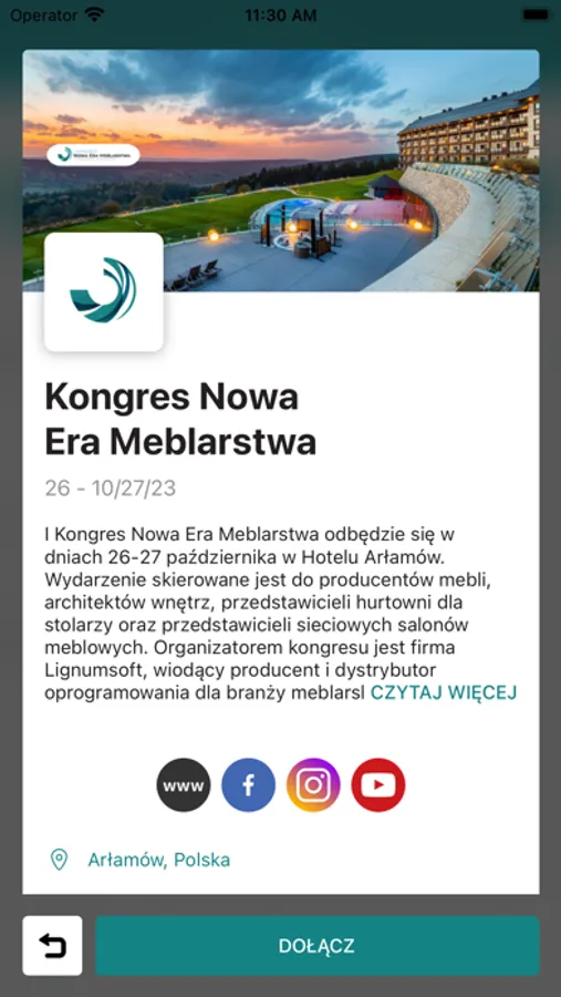Jesteś producentem mebli lub architektem wnętrz? Chcesz dołączyć do wydarzenia organizowanego przez Lignumsoft? Nic prostszego! Pobierz aplikację Lignumsoft EVENTS i bądź na bieżąco. Dzięki aplikacji Lignumsoft EVENTS poznasz szczegółową agendę wydarzenia, pobierzesz interesujące Cię materiały, bezproblemowo skontaktujesz się z przedstawicielem firmy lub innymi uczestnikami wydarzenia.