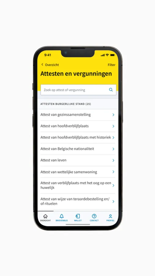 Alle functionaliteiten van de algemene app Mijn Burgerprofiel van de Vlaamse overheid zijn ook terug te vinden in de versie van Zemst.