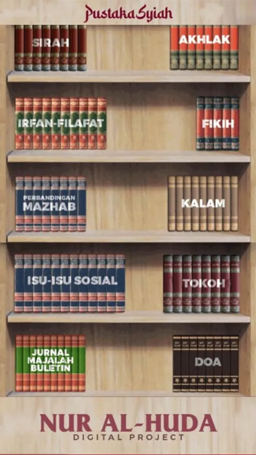 Anda bisa membaca ratusan buku menarik dan mencerahkan dari Pustaka Syiah. Semuanya dapat dibaca dengan cuma-cuma dan tentunya akan menambah wawasan Anda mengenai Islam dan Ahlul Bait as.