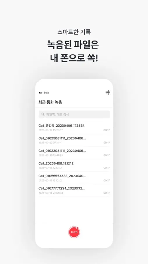 내가 통화한 상대방 정보와 시간까지 자동으로 기록해요.