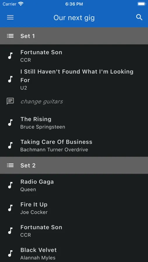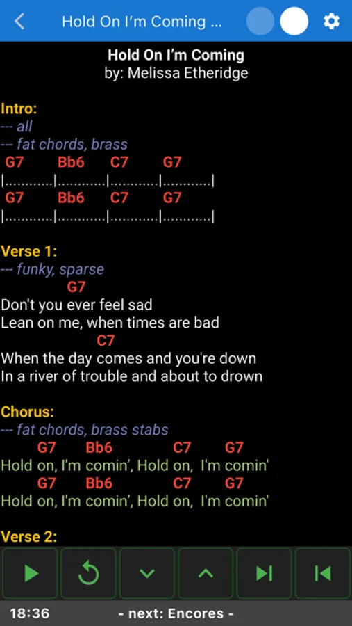 - Organize your songs in setlists and step through them in sequence