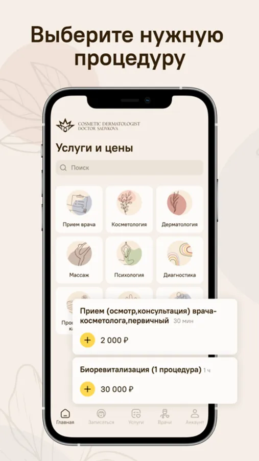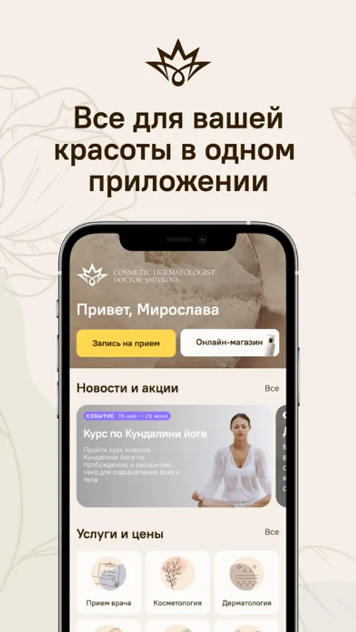 Приложение Dr. Sadykova предоставляет пользователю доступ к широкому спектру косметологических услуг и экспертной информации.