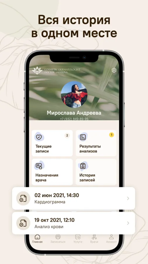 - Личный кабинет. Вы сможете создать свой личный кабинет, в котором будут храниться записи на консультации, история посещений, информация о продуктах, использованных во время процедур, и многое другое.