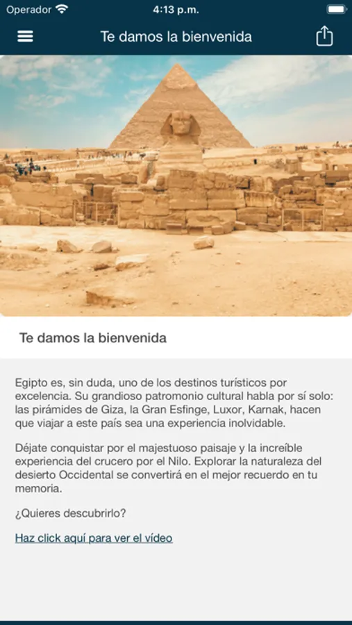 ¡Bienvenido a Tierra de Faraones! En esta app podrás encontrar toda la información necesaria para planificar tu viaje, descubrir los sitios turísticos más emblemáticos y disfrutar de esta experiencia.