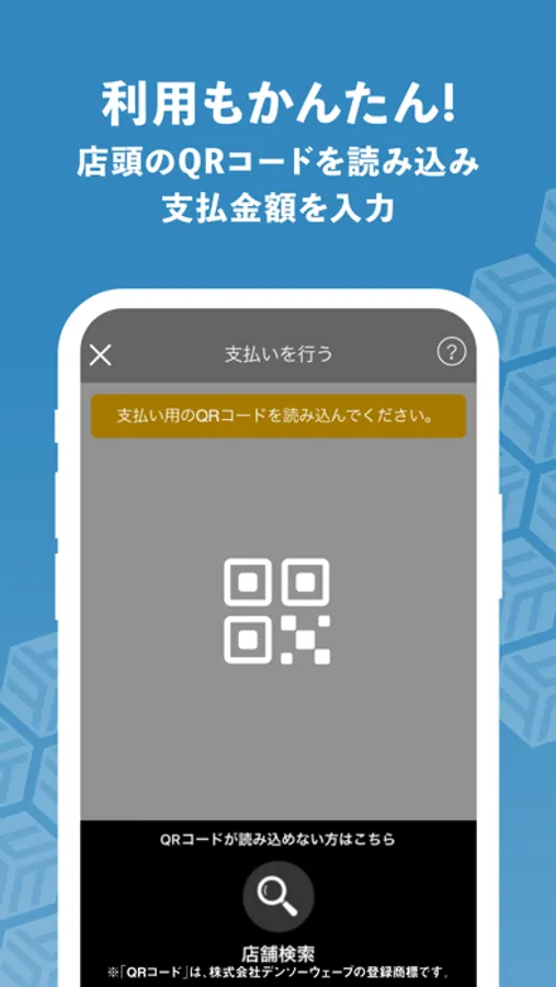 利用もアプリで!商品券を選び、店頭のQRコードを読み込み、支払金額を入力することで利用いただけます。