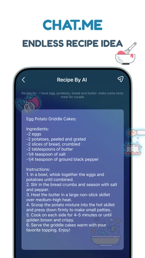 Discover Delicious Recipes: Stuck with limited ingredients? Chat.Me can come to your rescue. Simply input your ingredients, and it will generate mouthwatering recipes for you to try. No more searching through endless cooking websites. Explore new dishes and surprise your taste buds effortlessly.