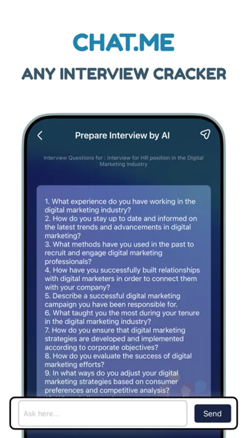 Getting ready for an important interview? Chat.Me is here to help you excel. With a wide range of interview questions and expert guidance, it will prepare you with confidence. Practice your responses and receive valuable feedback to ace your interview.