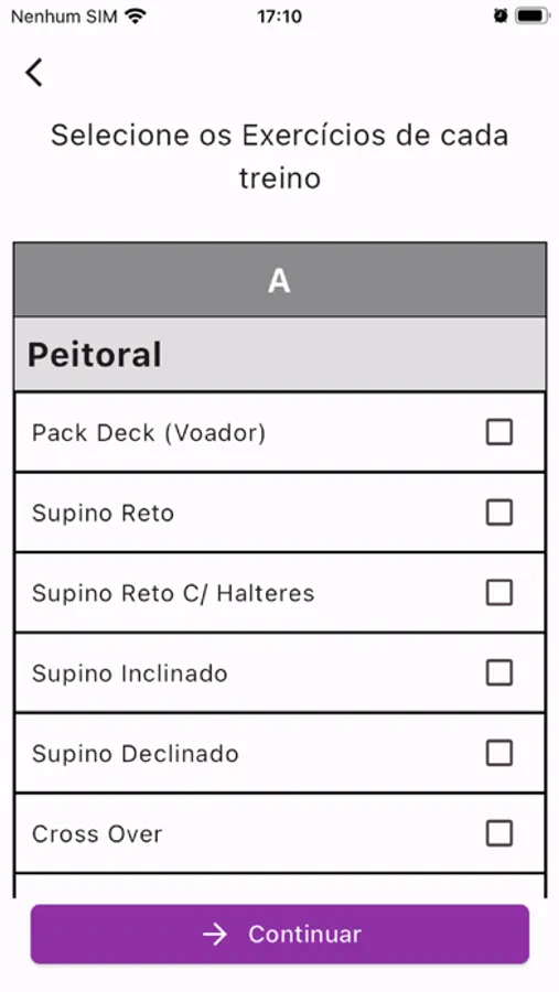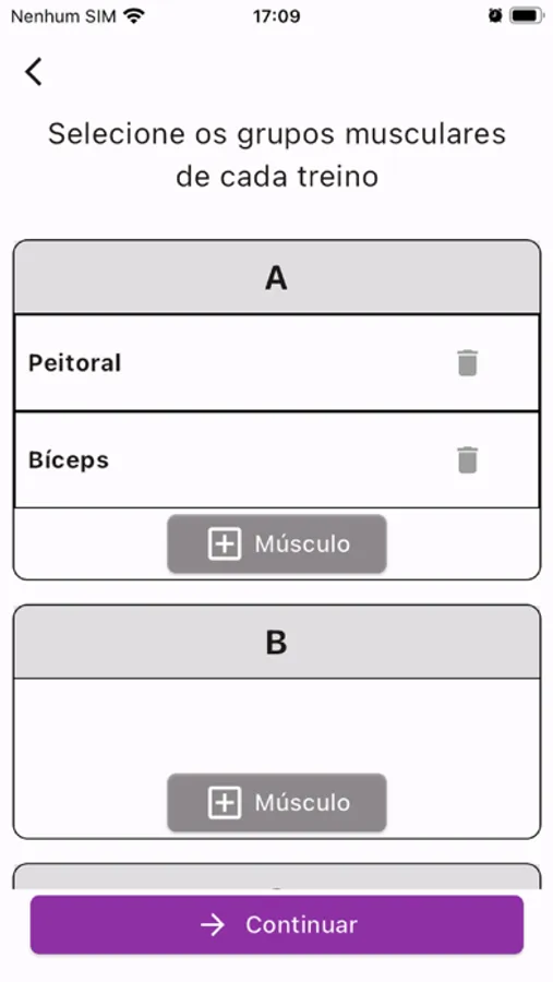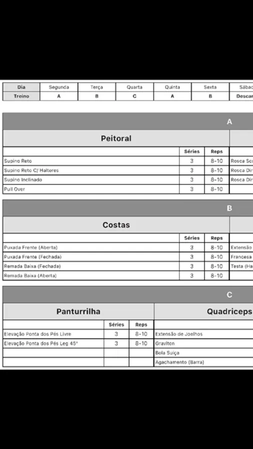 1- Escolha a divisão do treino, ex: “A,B e C”.