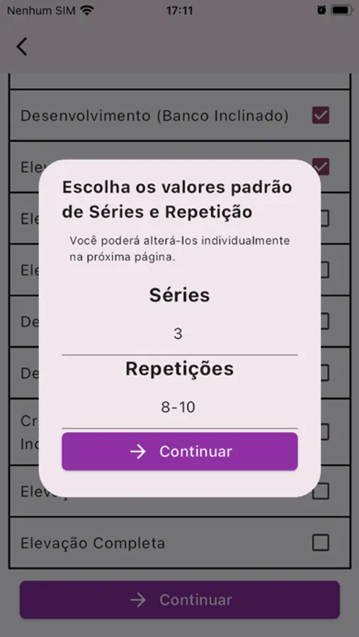 4- Preencha a quantidade de séries e repetições de cada exercício.