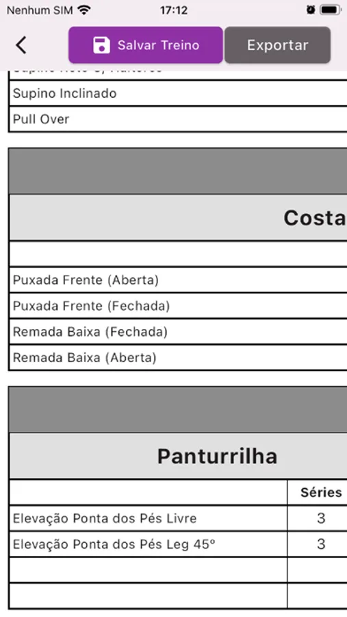 Você poderá salvar o treino, compartilhar e exportar em PDF / imagem.