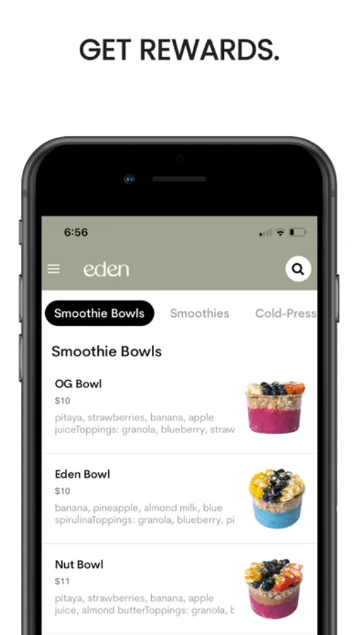 Eden Smoothies app. Order ahead, earn rewards, track points, and see your order history.