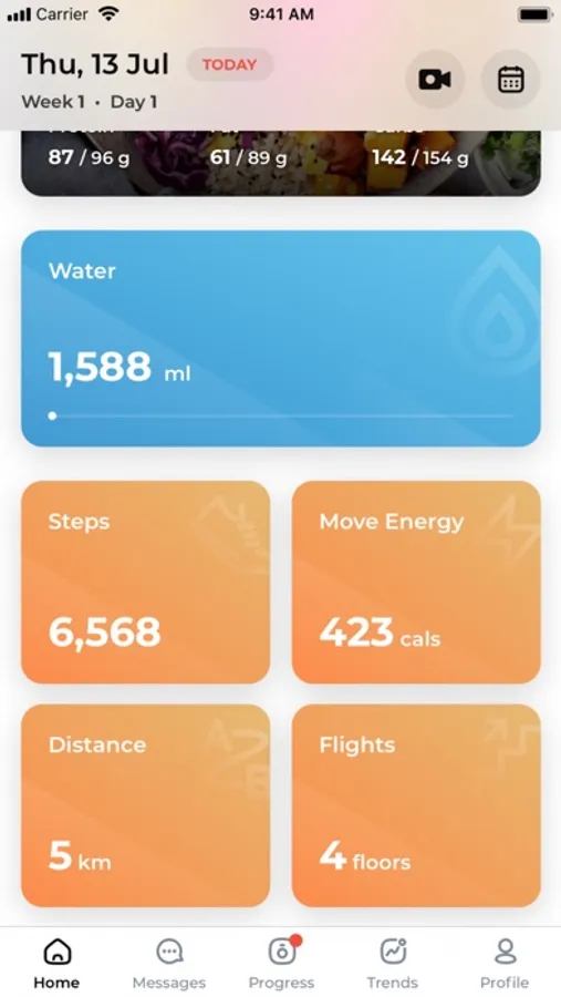 The app integrates with Apple Health to show your daily activity - distance, steps, active energy, and flights to help you better achieve your goals.