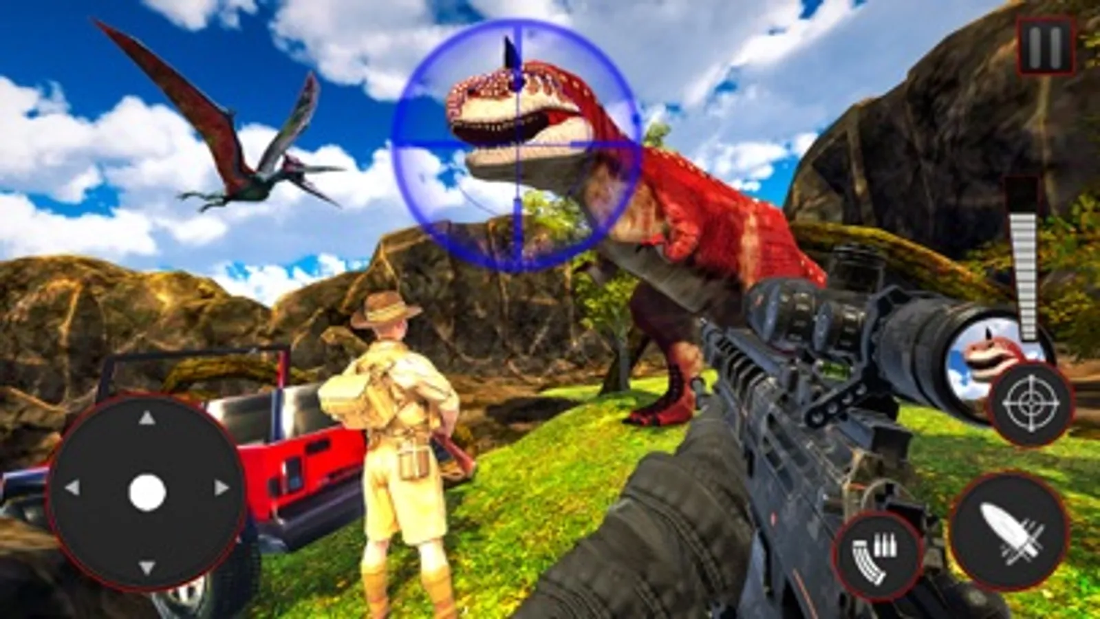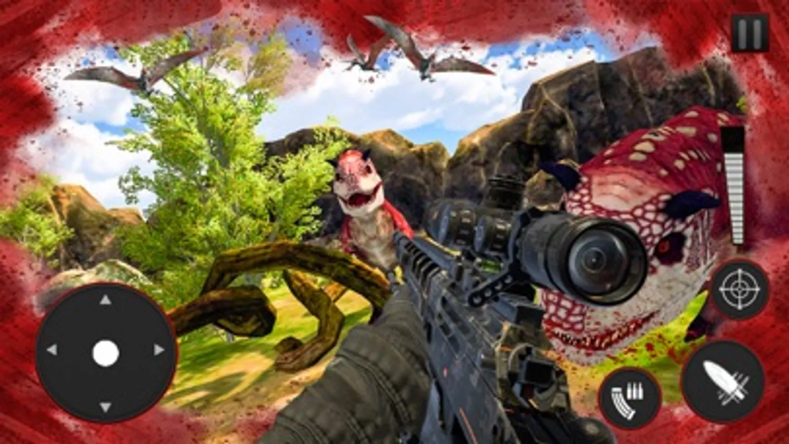 You are stuck in a jungle full of dinosaurs. They are very dangerous and only solution to your survival is to hunt them. Shoot them where you see them.