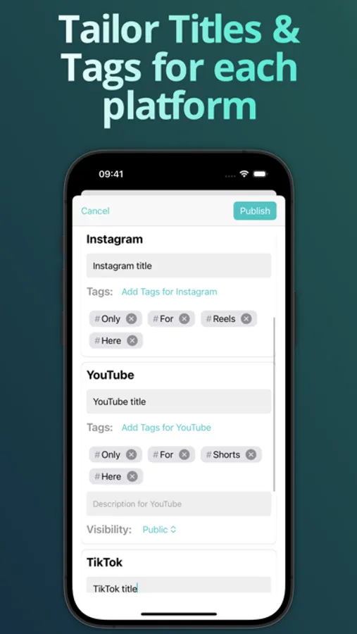 - Customizable Posts: Tailor titles, tags, and descriptions for each platform.