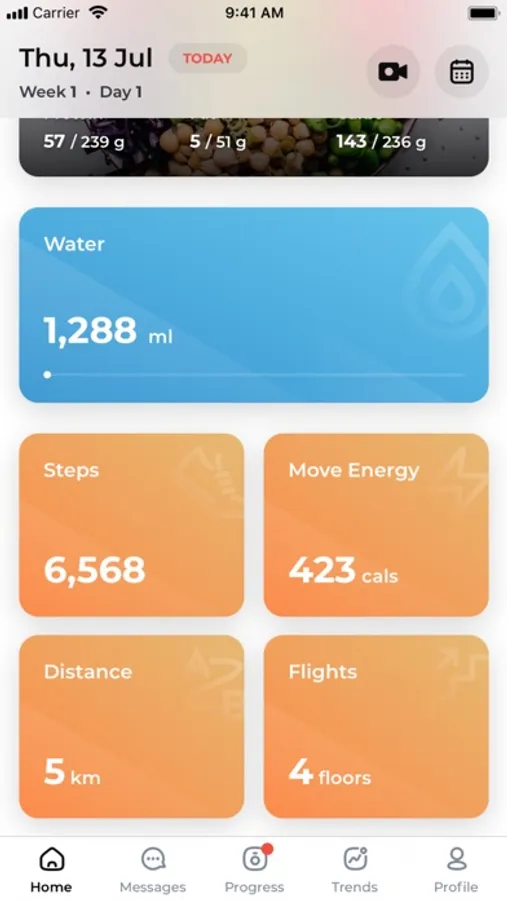 The app integrates with Apple Health to show your daily activity - distance, steps, active energy, and flights to help you better achieve your goals.