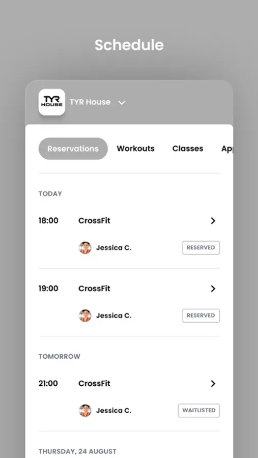 For members of TYR House to reserve their place in a class, sign up for gym events, and general account management like updating headshots and credit card on file.