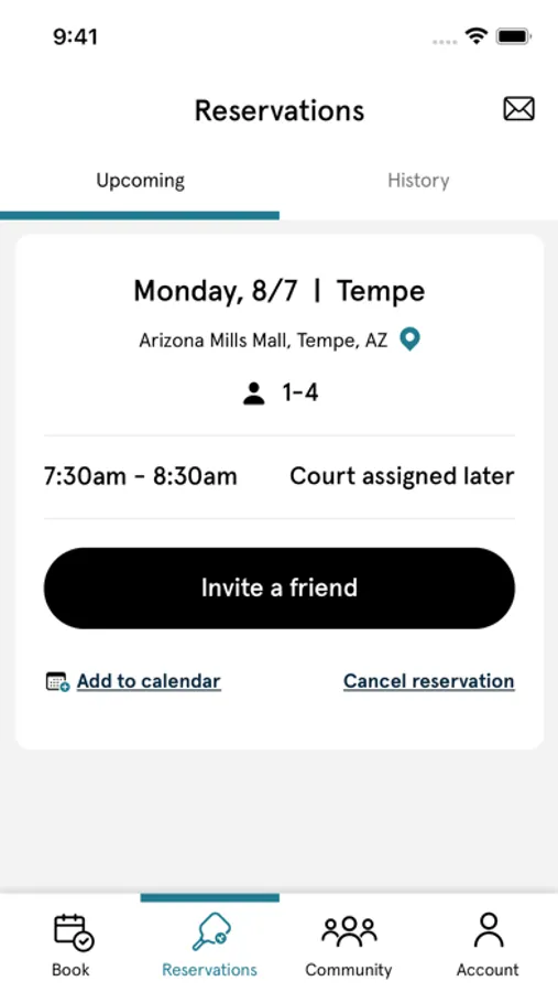 • Book a court - Use the app to easily book a court and invite your friends to play