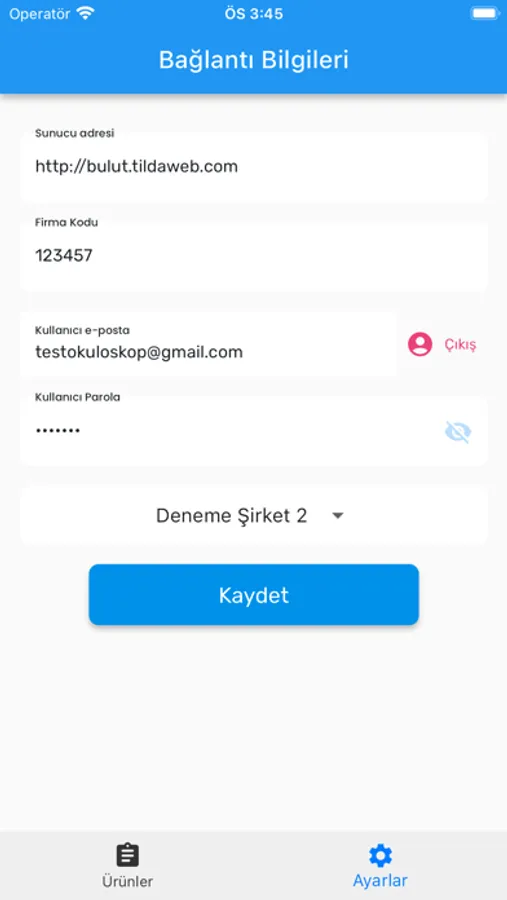 Firma kodu ve kullanıcı parolanızı kaydedin.