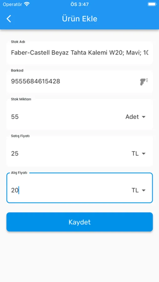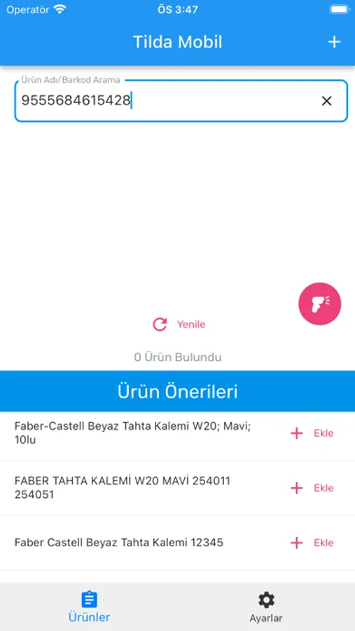 Yeni ürün eklemek için üstteki + düğmesini kullanabilirsiniz.